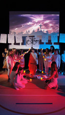 „Jestem” – to tytuł misterium wielkanocnego, które odbyło się 27.03.2024r. w Naszej Szkole. W rolę aktorów wcielili się uczniowie klas 5, 7A i 7B. Tematyka trudna, pełna symbol, zadumy, wymagająca skupienia i koncentracji. To czas spotkania z Bogiem i tradycją, która przybliża nas do największej tajemnicy jaką jest zmartwychwstanie. Dziękujemy publiczności za ciepłe przyjęcie. A aktorom za oddanie treści poprzez przechodzenie między dwiema scenami: teraźniejszą i z czasów Jezusa.