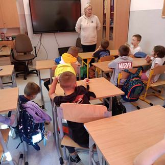 04.11.2025 uczniowie klasy 1b odwiedziła zaprzyjaźniona dietetyk- P. Justyna Ślusarska, która przybyła na zaproszenie wychowawczyni P. Magdaleny Nowak. Nasz gość opowiedział dzieciom o znaczeniu i wartościach odżywczych spożywanych warzyw i owoców, jednocześnie powołując się na obowiązującą piramidę zdrowego żywienia. Aby przybliżyć tę - nasi milusińscy obejrzeli filmik edukacyjny, w którym Karol analizuje kolejne piętra piramidy zwracając uwagę na to, co jest niezdrowe w nadwyżce, czyli cukier, sól oraz produkty fast-foodowe. Podczas spotkania Pani Justynka odpowiadała cierpliwie na nurtujące dzieci pytania, związane z przygotowywaniem w domu zdrowych posiłków oraz ilością cukrów zawartych w ulubionych przez nich napojach. Na zakończenie wizyty, pierwszaki podjęły postanowienie, że od teraz będą ograniczać spożywanie niezdrowego jedzenia na koszt zdrowych kanapeczek ,owoców i warzyw.