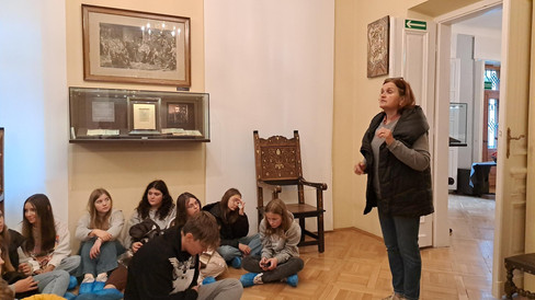 W dniu 4 października 2024 r. uczniowie klasy VII, VIII A oraz VIII B udali się na wycieczkę do Czarnolasu, gdzie zwiedzili Muzeum Jana Kochanowskiego. Jego siedzib jest klasycystyczny, pochodzący z XIX wieku, dwór Jabłonowskich, który został zaprojektowany przez Jakuba Kubickiego. Odbudowany po pożarze w 1904 r. przez kolejnego właściciela - Stanisława Zawadzkiego. W muzeum mieści się ekspozycja stała typu biograficznego. Zgromadzono tu wiele wydań dzieł poety, opracowania na temat jego życia i twórczości oraz niektóre bezpośrednio z nim związane pamiątki: dębowy fotel z herbem, obity skórą z wytłaczanym wzorem (kurdyban) oraz żelazne drzwi z inicjałami i herbem Korwin, pochodzące prawdopodobnie ze skarbczyka spalonego w roku 1720 dworu poety. Uczniowie z zainteresowaniem wysłuchali informacji na temat życia i twórczości poety. Następnie wzięli udział w Questingu – z wielkim zaangażowaniem poszukiwali odpowiedzi ukrytych w parku, wykorzystując zdobytą wiedzę o Janie Kochanowskim.